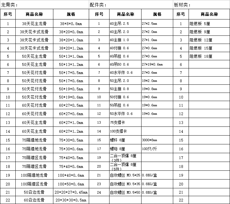 1、招標名稱:廣東地區中裝龍骨及配件和板材